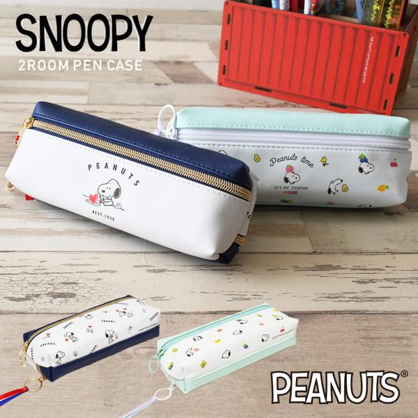 スヌーピー ペンケース 筆箱 レディース 女子 大人 高校生 合成皮革 2ルーム ファスナー キャラクター 大容量 女の子 メンズ 男子