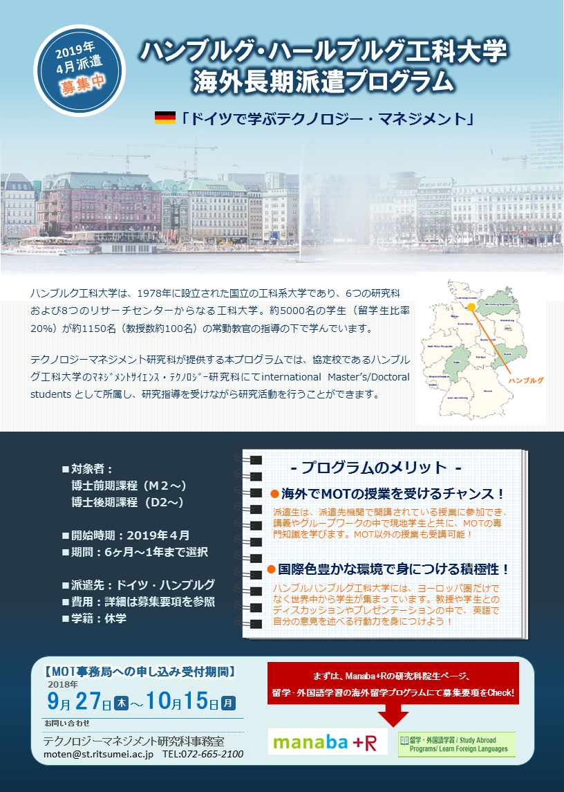 当研究科の留学プログラム ドイツで学ぶテクノロジー マネジメント をご紹介いたします news event 立命館大学mot大学院 テクノロジー マネジメント研究科 立命館大学