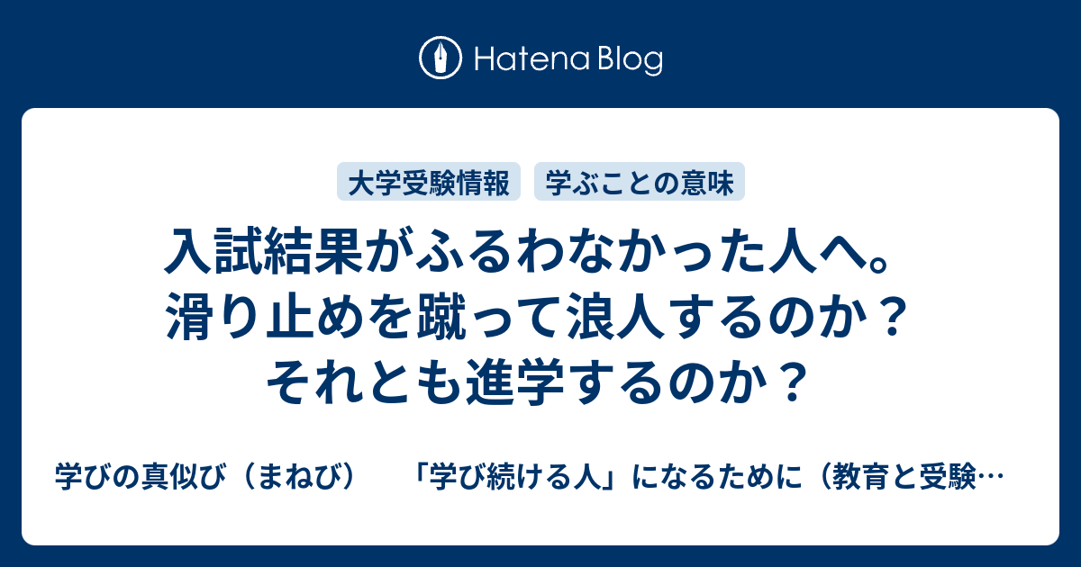 入試結果がふるわなかった人へ 滑り止めを蹴って浪人するのか それとも進学するのか 学びの真似び まねび 学び続ける人 になるために 教育と受験と勉強法