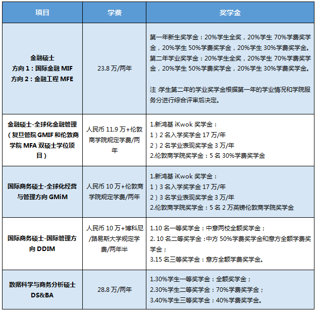 复旦大学管理学院专业硕士项目2021年学费及奖学金公示