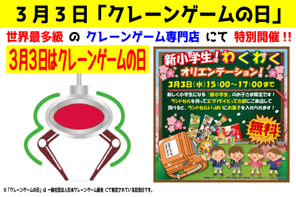 入学予行 体験型クレーンゲーム教室イベント 新小学生対象 ランドセルと一緒に楽しい思い出作りで 入学が待ち遠しくなる 小学校入学予行わくわくオリエンテーション 3月3日 クレーンゲームの日に開催 株式会社東洋 プレスリリース配信代行サービス ドリーム