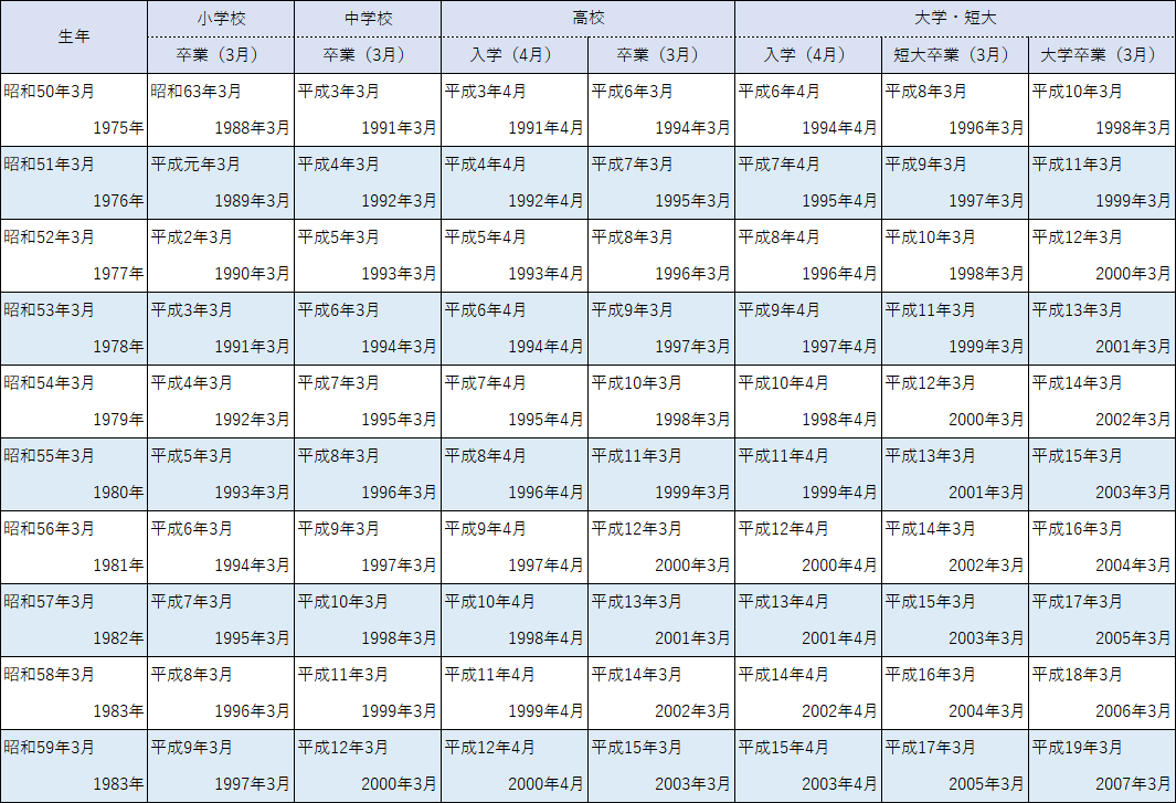 卒業 年 一覧