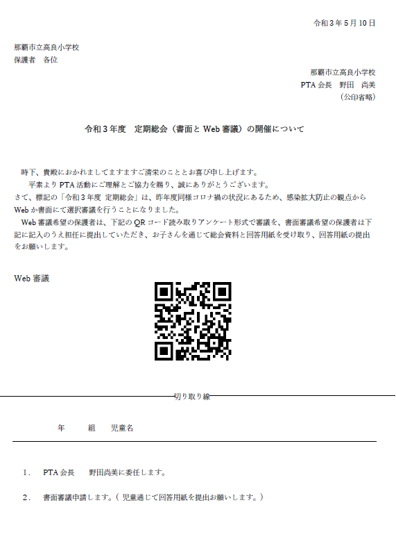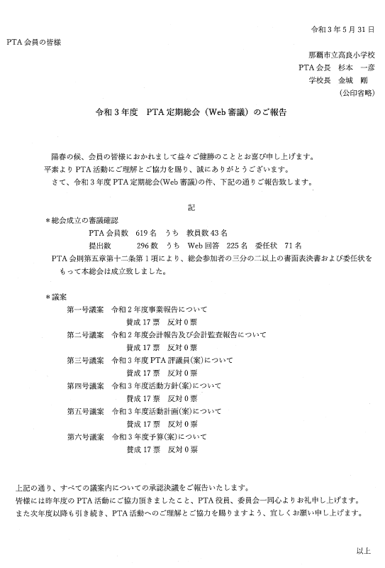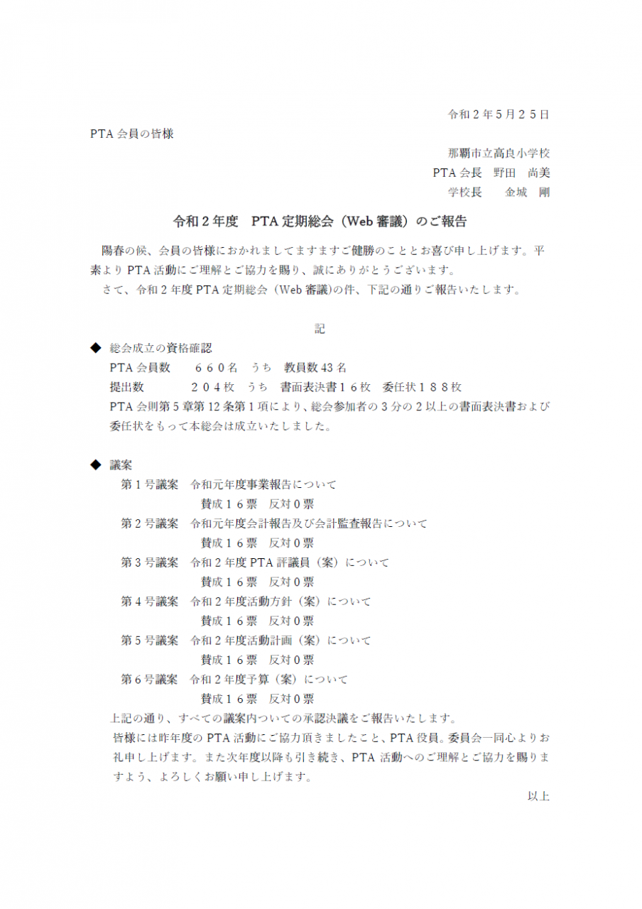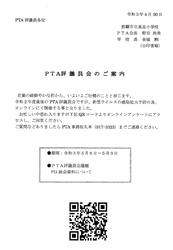 ptaからのお知らせ 高良小学校