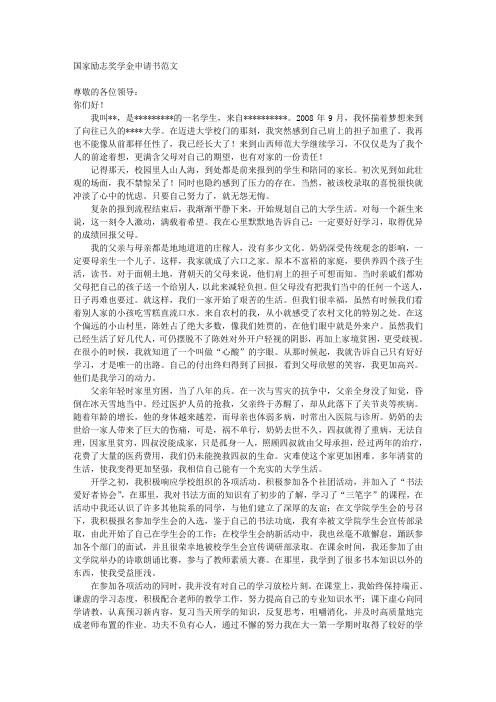 国家助学金申请书范文精选