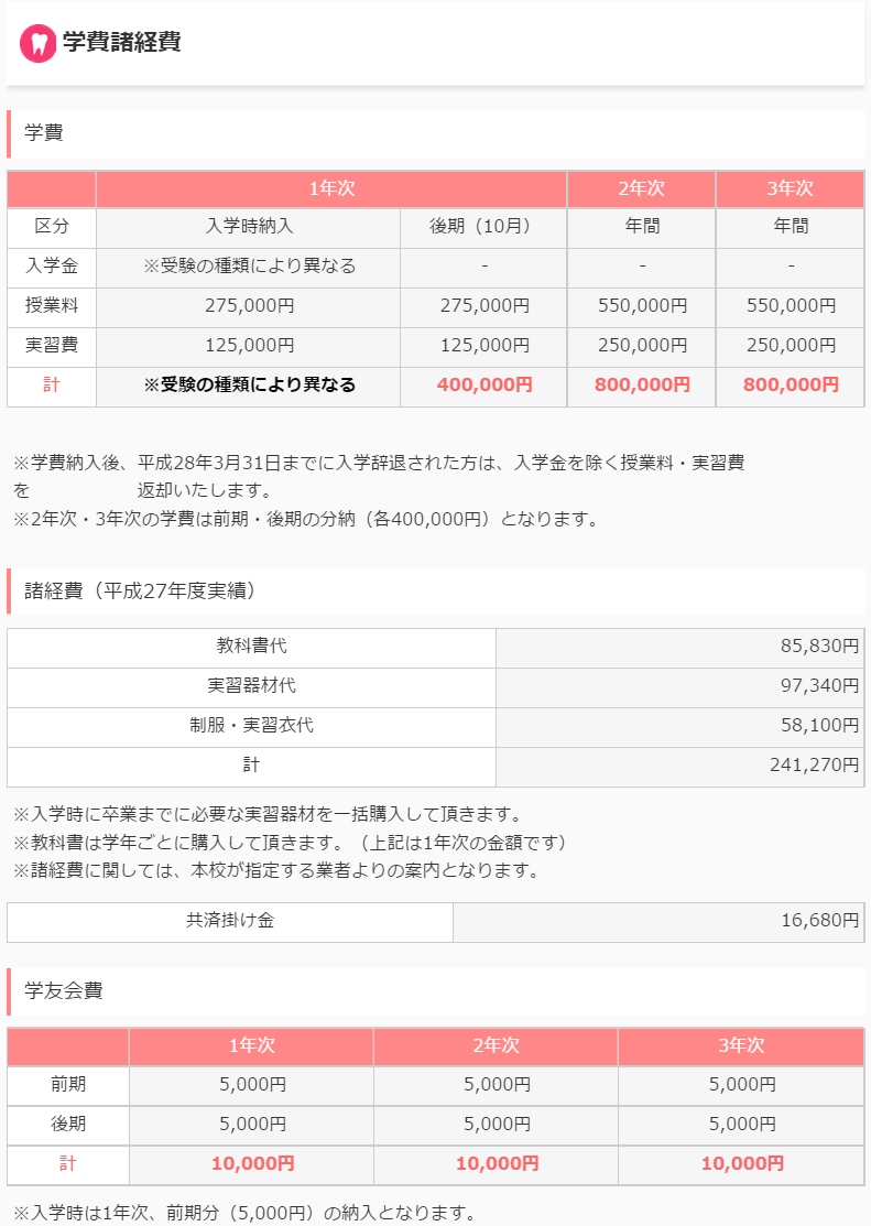 3年間で必要な学費と入学後の諸経費等