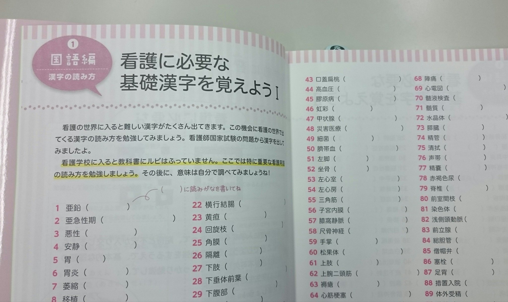 看護学校入学前ドリル 漢字で覚える解剖ドリル anatomy
