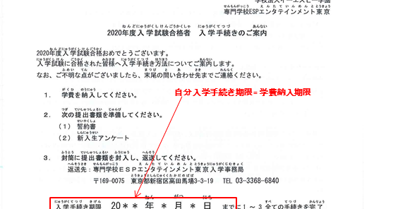esp college of entertainment tokyo 2020年度入学手続きのご案内 提出書類 学費納入