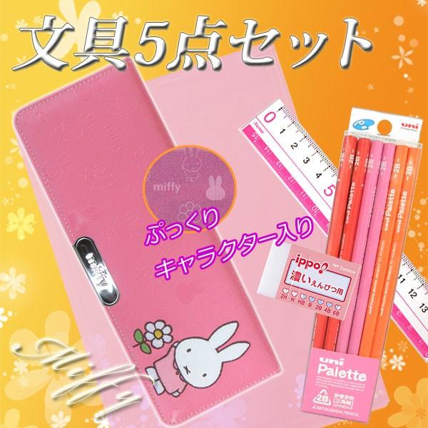 ミッフィ miffy オリジナル文房具5点セット 入学用品文具セット 片面 筆箱 ふでばこ 小学生 女の子 ピンク 桃色 メール便不可 15miffy set 文具王のosk yahoo ショッピング店 通販 yahoo ショッピング