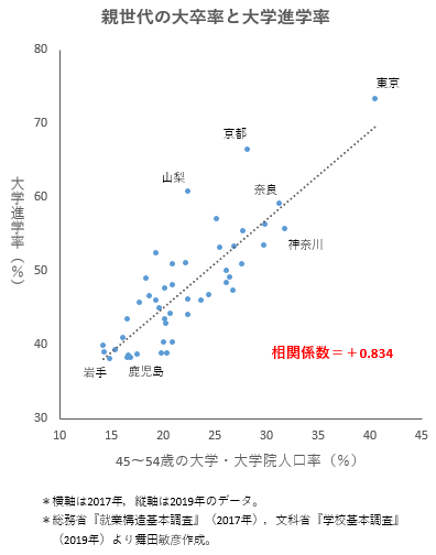 データえっせい 都道府県別の大学進学率 2019年春