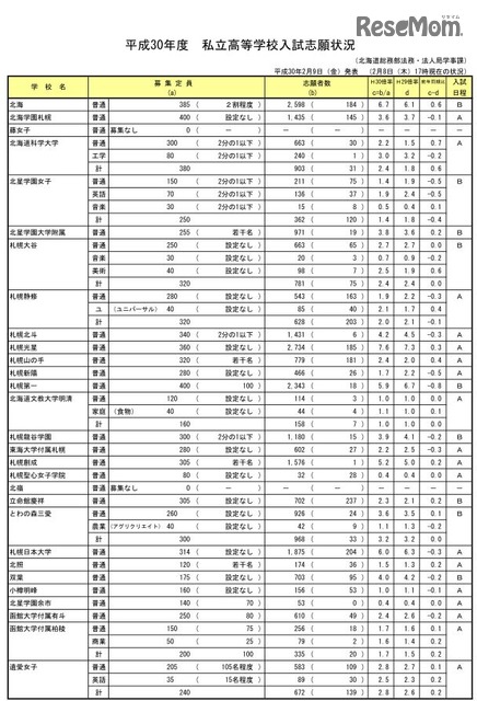 高校受験2018 北海道私立高校の志願状況 札幌光星7 6倍