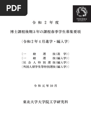 当日の資料 博士後期課程進学説明会 入学案内 東北大学 工学