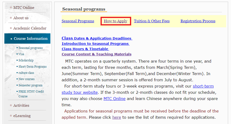 学季クラス 国立台湾師範大学国語教学センター