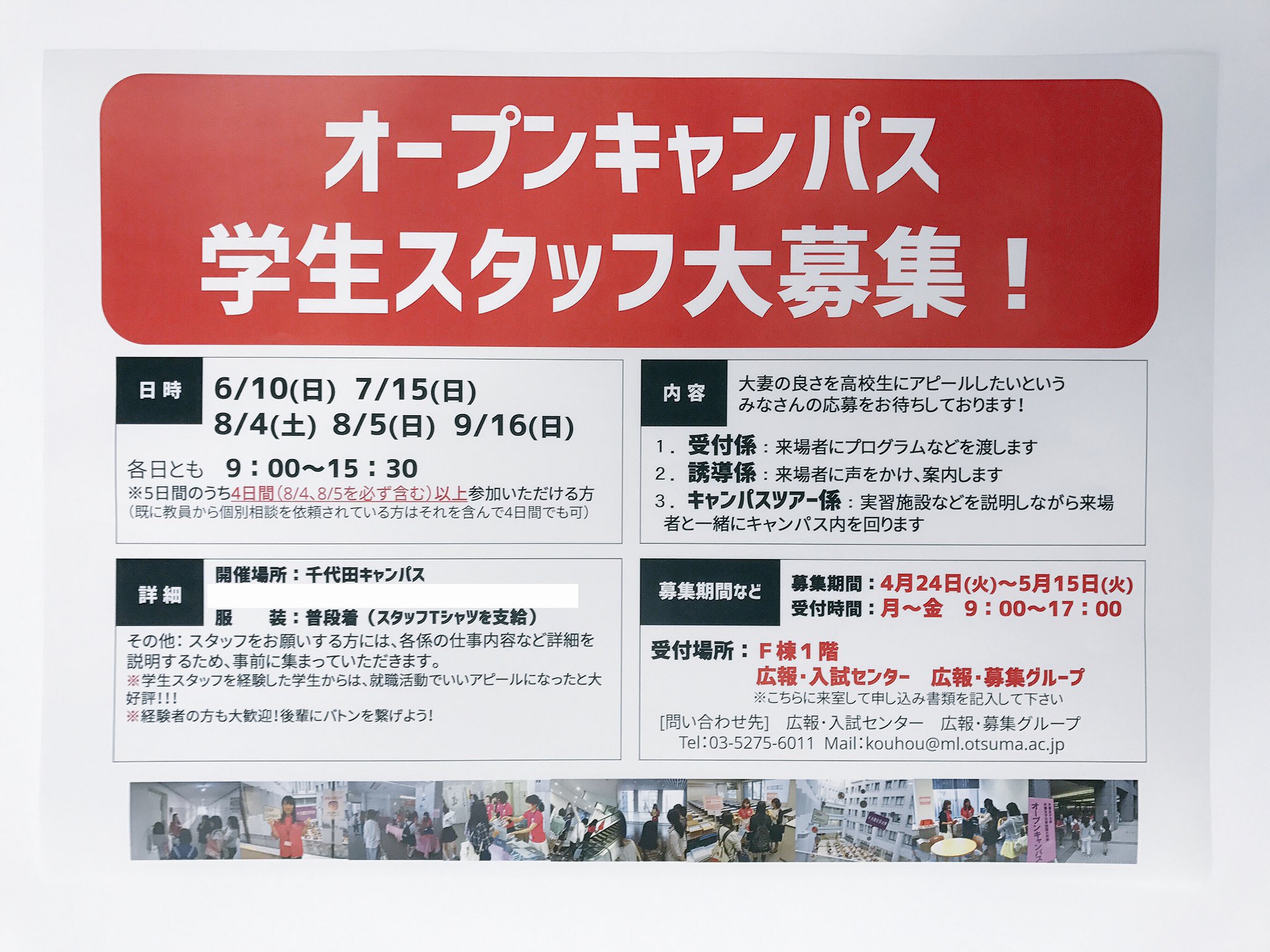 大妻女子大学 na twitteru オープンキャンパス学生スタッフ募集中 5 15まで 大妻が好きな方 大妻の良さを伝えたい方 ぜひこの機会にご応募ください 詳しい内容はunipa 学内ポータル で配信しているほか 学内に