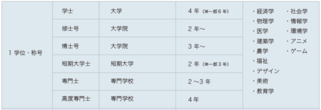 短大 大学 大学院
