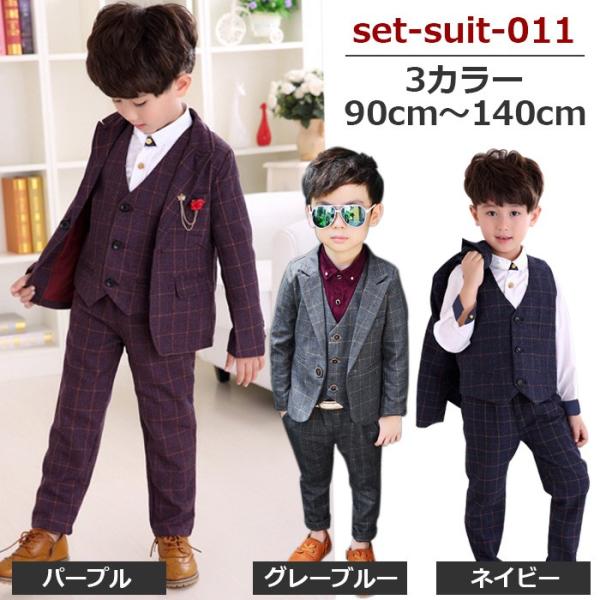 男の子 子供スーツ 2021年 福袋 3点セット ジャケット パンツ ベスト 3ピーススーツ ボルドー ネイビー グレー パープル ブラック 90cm 100cm 110cm 120cm 130cm 140cm 150cm 卒業式 入園式 発表会 結婚式 誕生日 七五三
