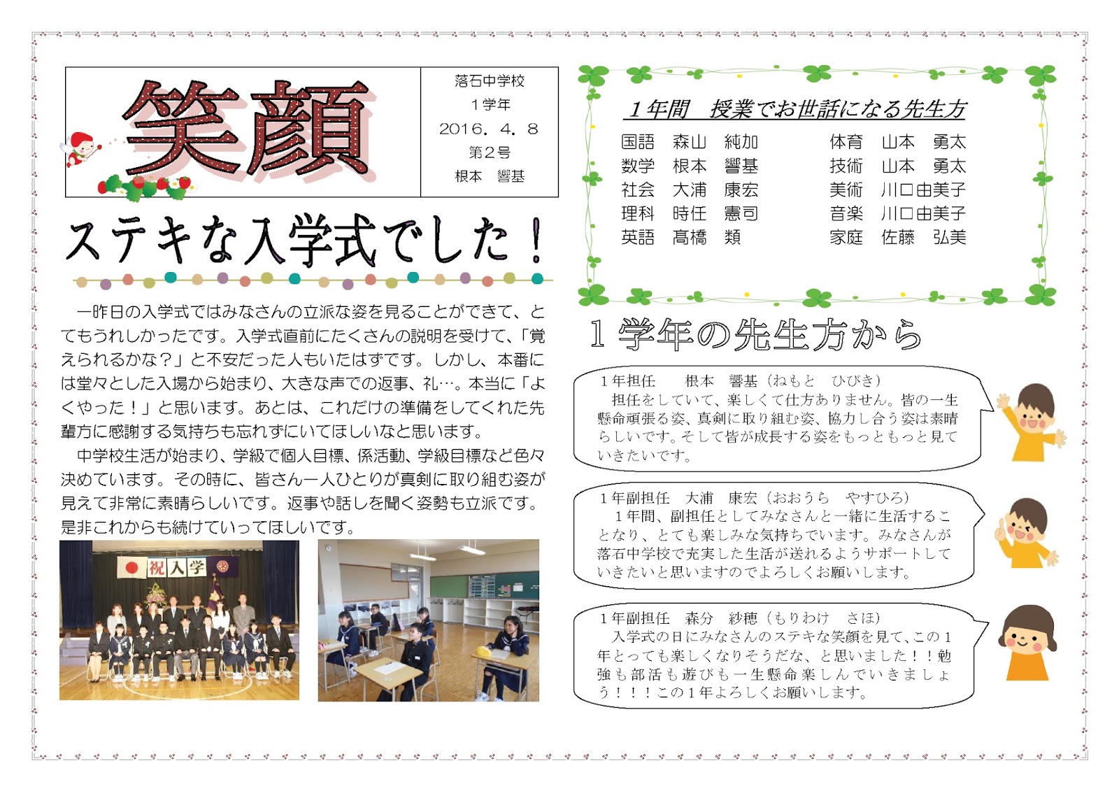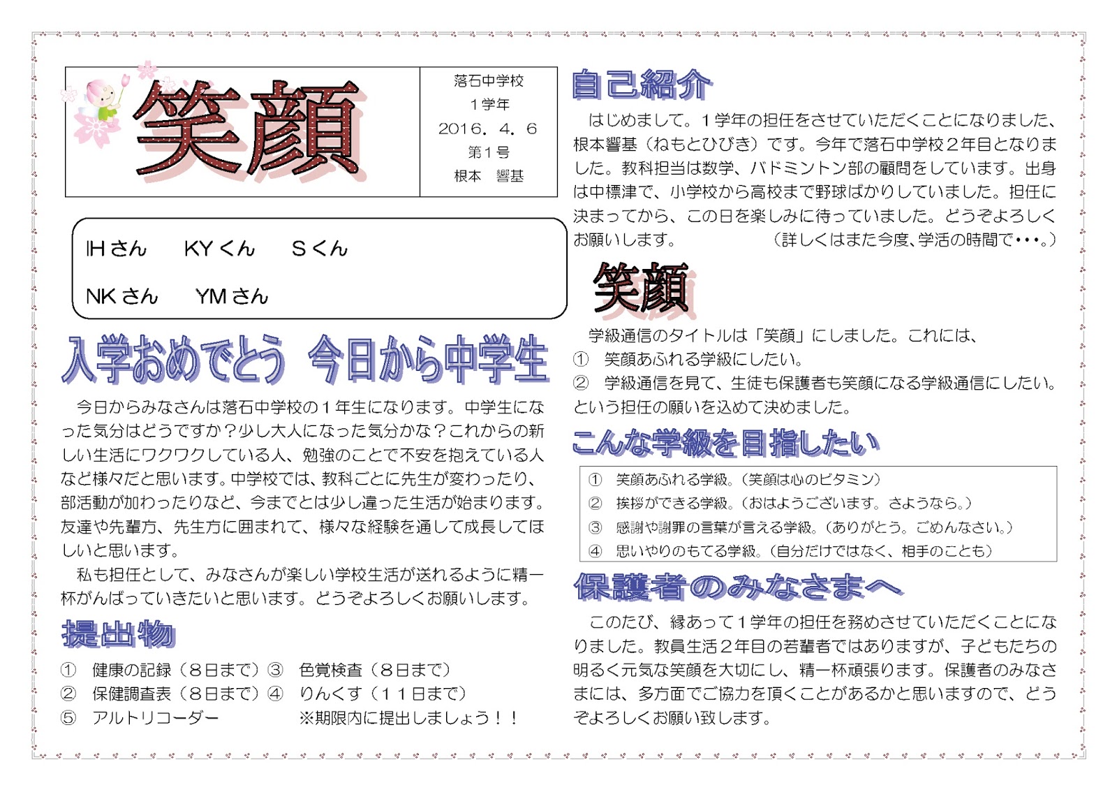 学年通信 1年生 浅口市立寄島中学校