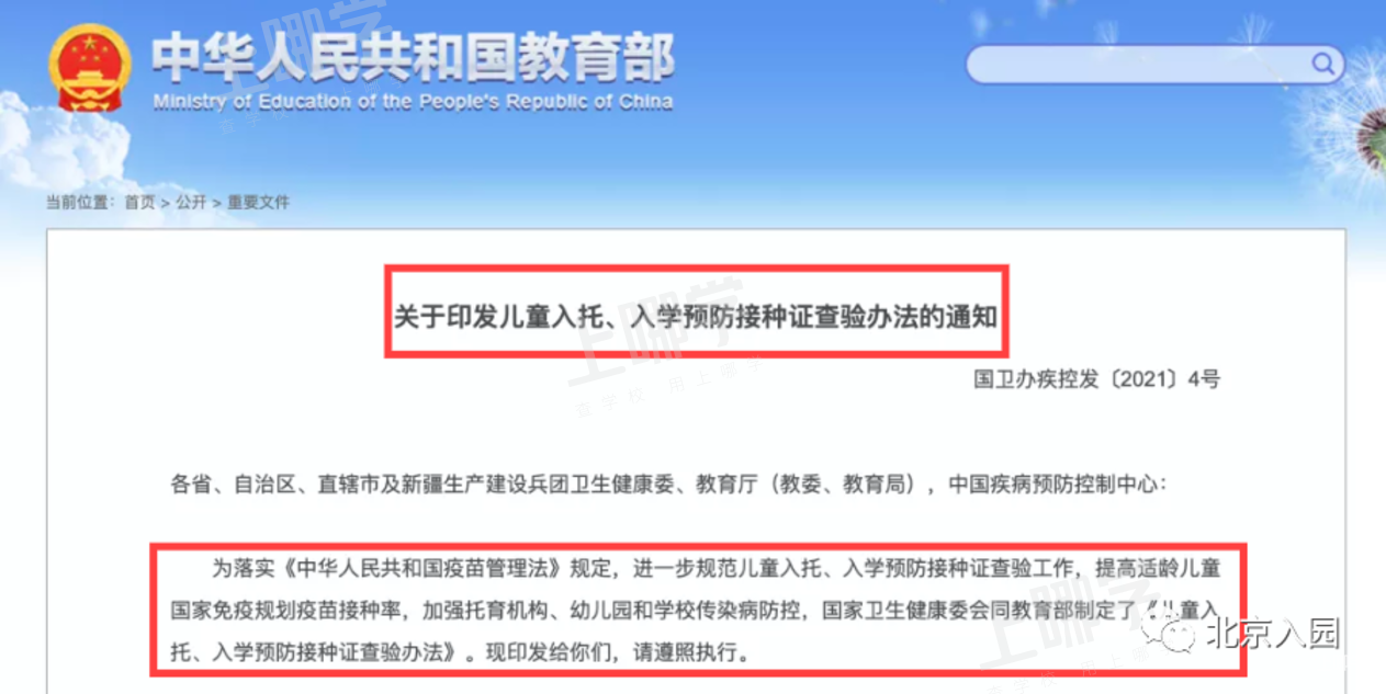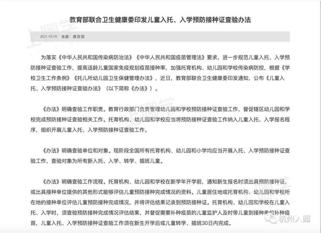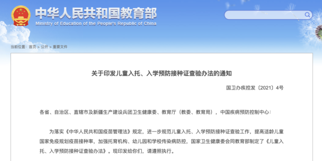 教育部强调儿童入托入学须查验预防接种证 天津宁河长安网手机版