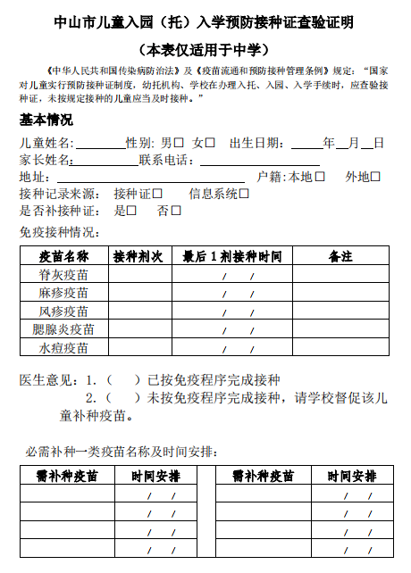 儿童入托入学须出具预防接种证