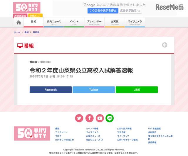 高校受験2021 山梨県公立高入試 テレビ山梨が解答速報3 3午後4時50分より 受験対策情報 ニュースなら お受験ねっと