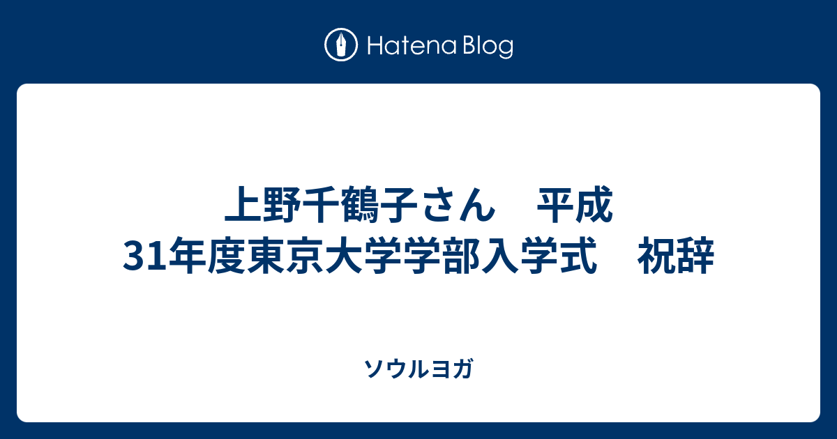 東大入学式の上野千鶴子さんの祝辞はよかった 全文読むことをオススメしたい 林原りかの公式ブログ 林原商店
