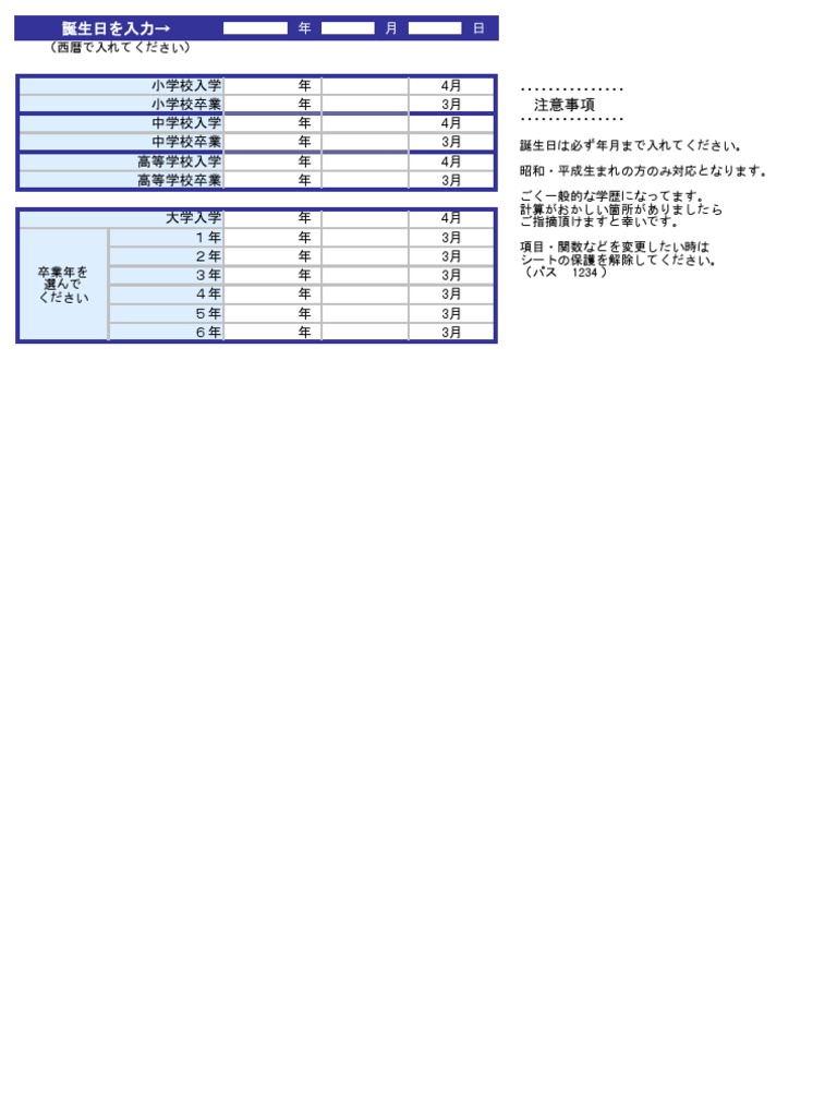 みんなの履歴書 入学 卒業年度早見表