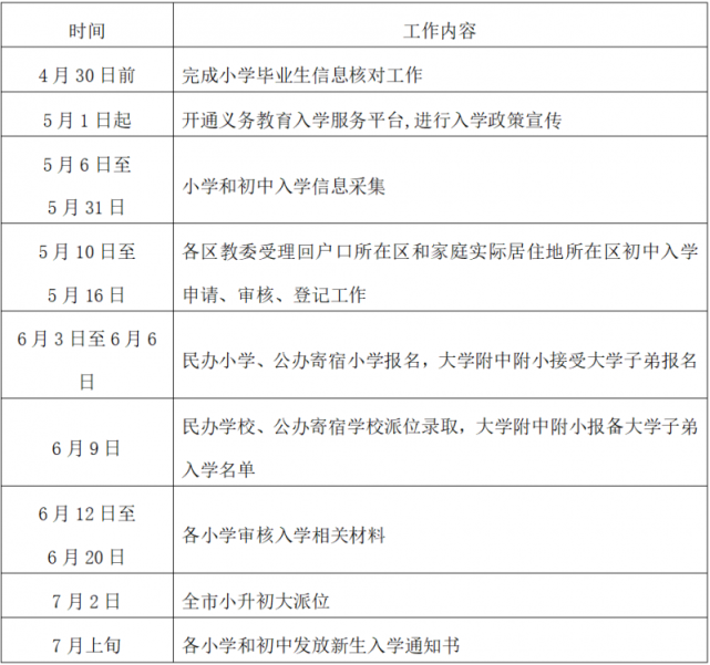 2021年义务教育阶段入学工作时间安排表 国际教育网
