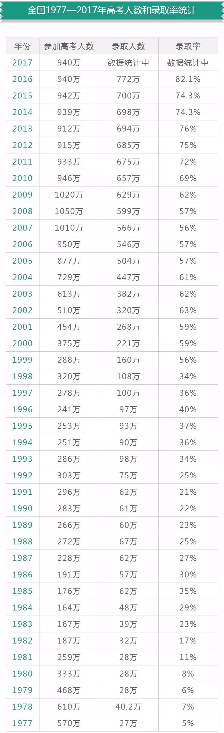 1950年至2016年全国高考报考人数与录取率2017年各省高考录取率 温州大学化学与材料工程学院