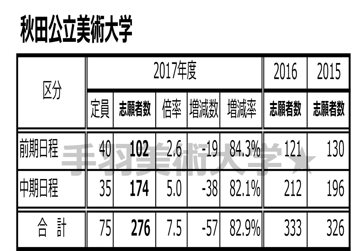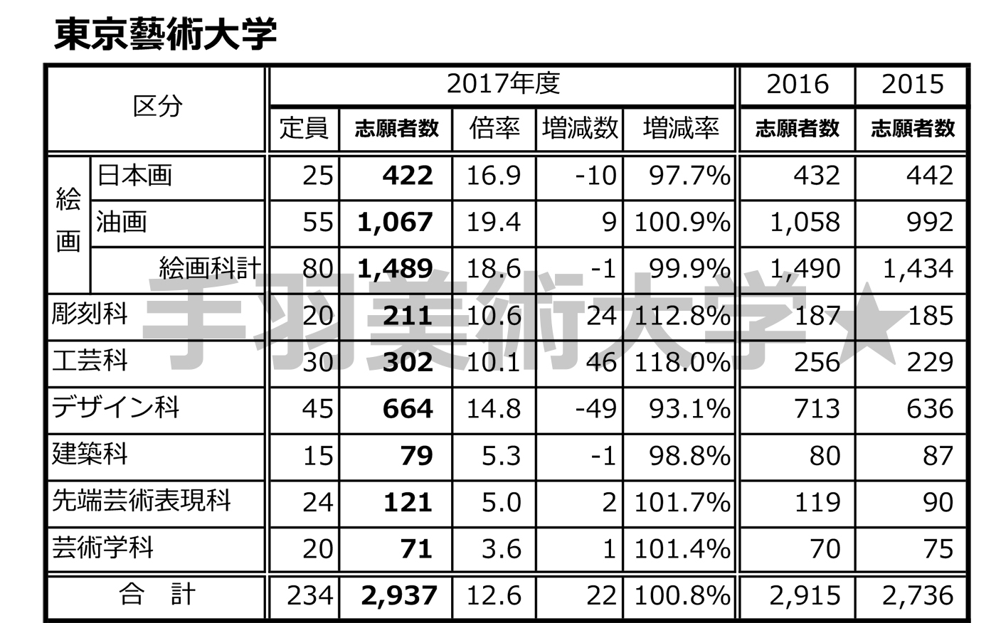 ビダモン2017 今年の国公立芸術系大学の志願者数は