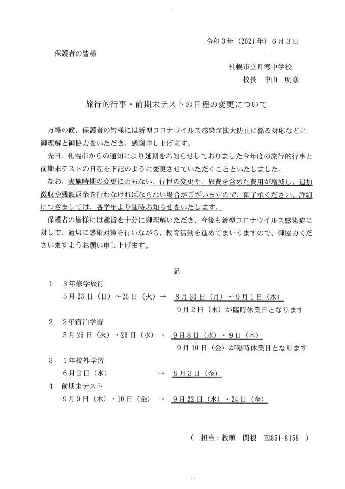 札幌市立月寒中学校 ニュース お知らせ 含ウイルス関連
