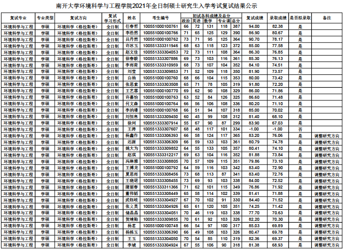 南开大学环境科学与工程学院2021年考研复试录取名单 二 南开大学考研信息资料网