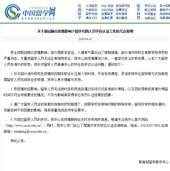 教育部留学服务中心关于疫情下留学归国人员学位认证工作的说明 附菲律宾院校最新政策 海外学位网