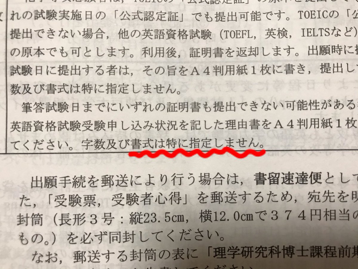 書式は特に指定しない 大学院の願書でtoeicが受験できなかった理由をフリ素使った画像でバズった人 無事院試に合格する 合格は最高のオチ togetter