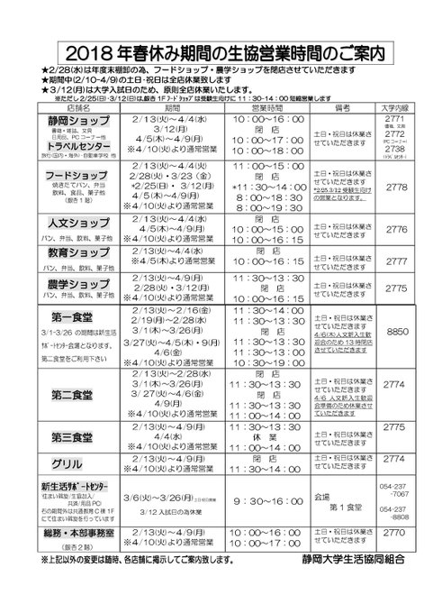 静大生協 浜松キャンパス hama coop 2017年03月 page 2 twilog