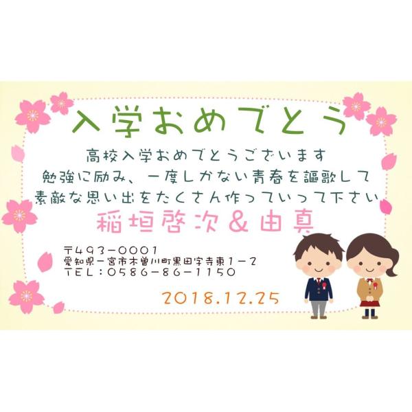 入学おめでとう メッセージカード