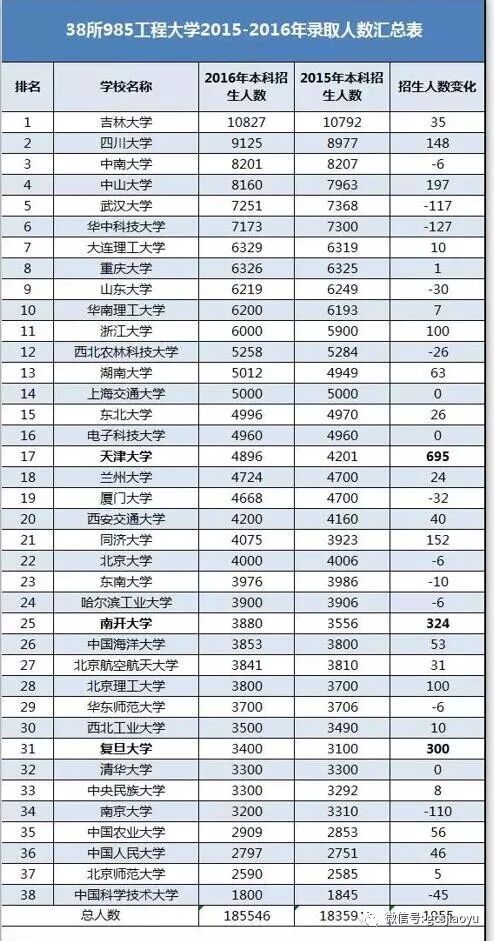 哪些985高校本科招生人数最多 用数据说话