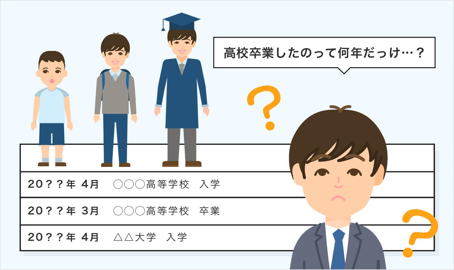20代の方向け 履歴書の入学 卒業年度早見表