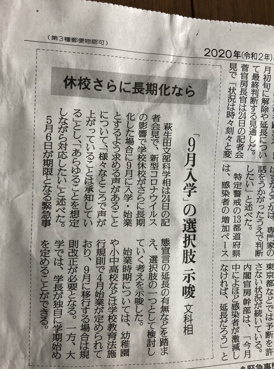 文科相 大きな選択肢 9月入学 新学期の議論加速 日本教育新聞電子版 nikkyoweb