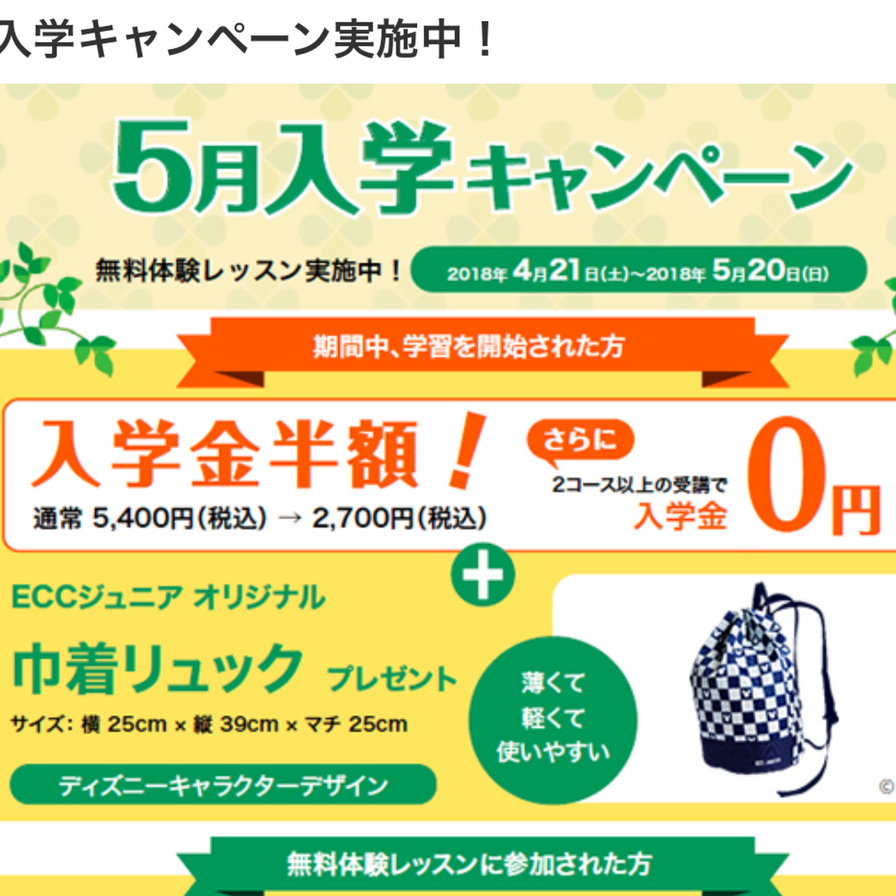 eccジュニア 入会金無料キャンペーン studio soul blend