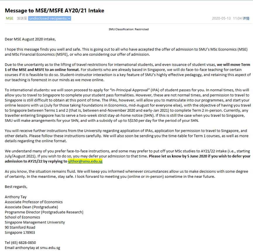 最新 新加坡院校宣布延期入学通知 腾讯新闻