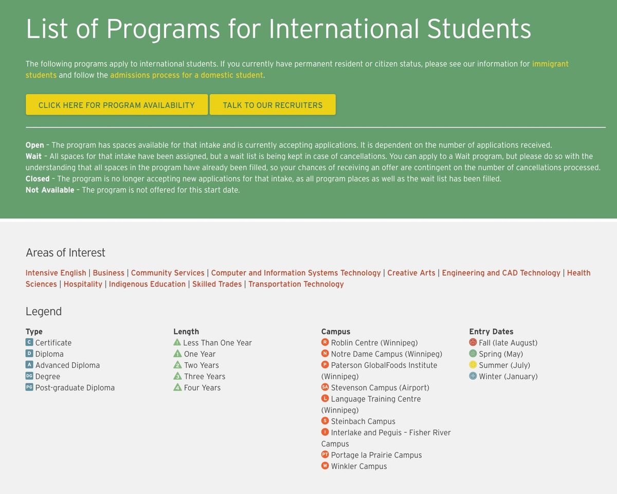 list of programs international education at red river college